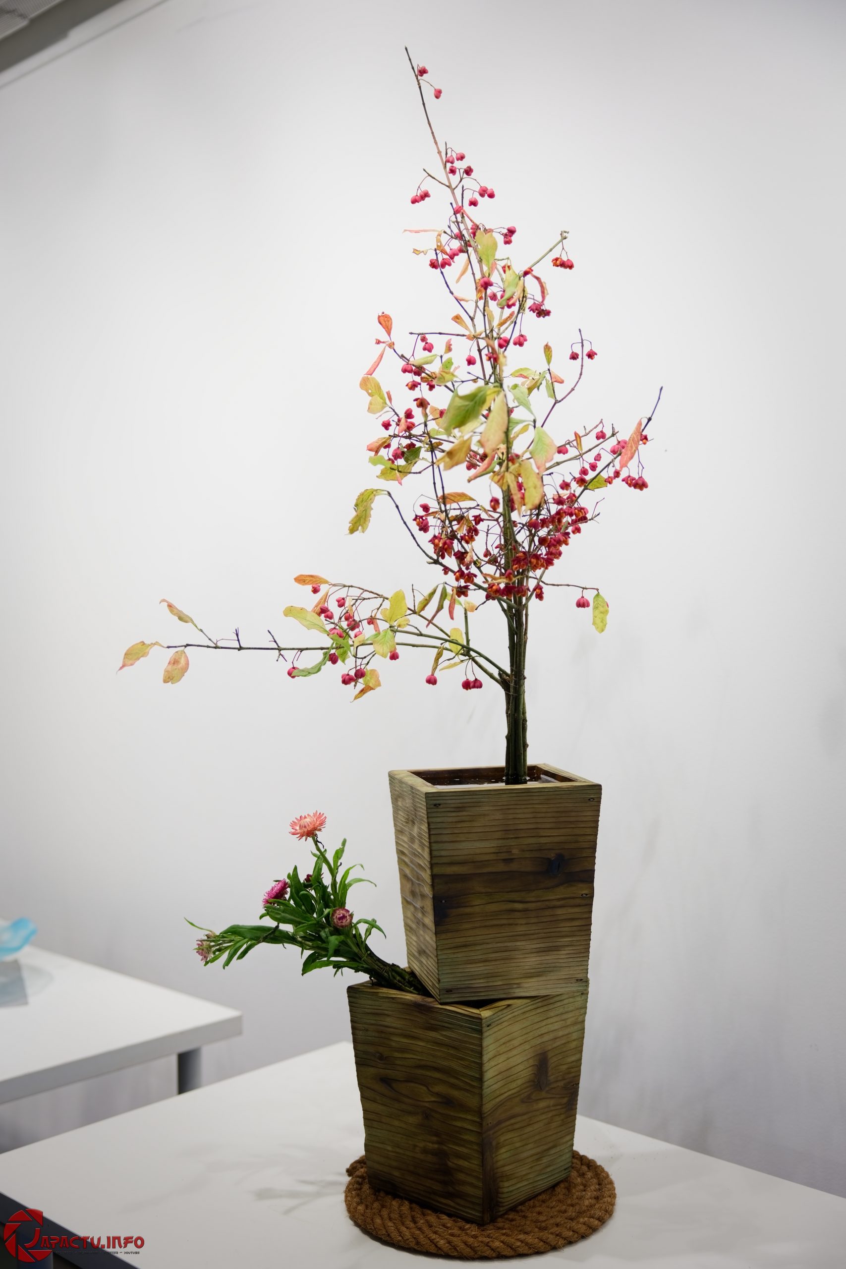 Yaeno Noda, maître de l’École Misho à Osaka, a choisi « le chemin » comme thème d’exposition afin d’exprimer l’évolution de ses différents styles de compositions d’ikebana.