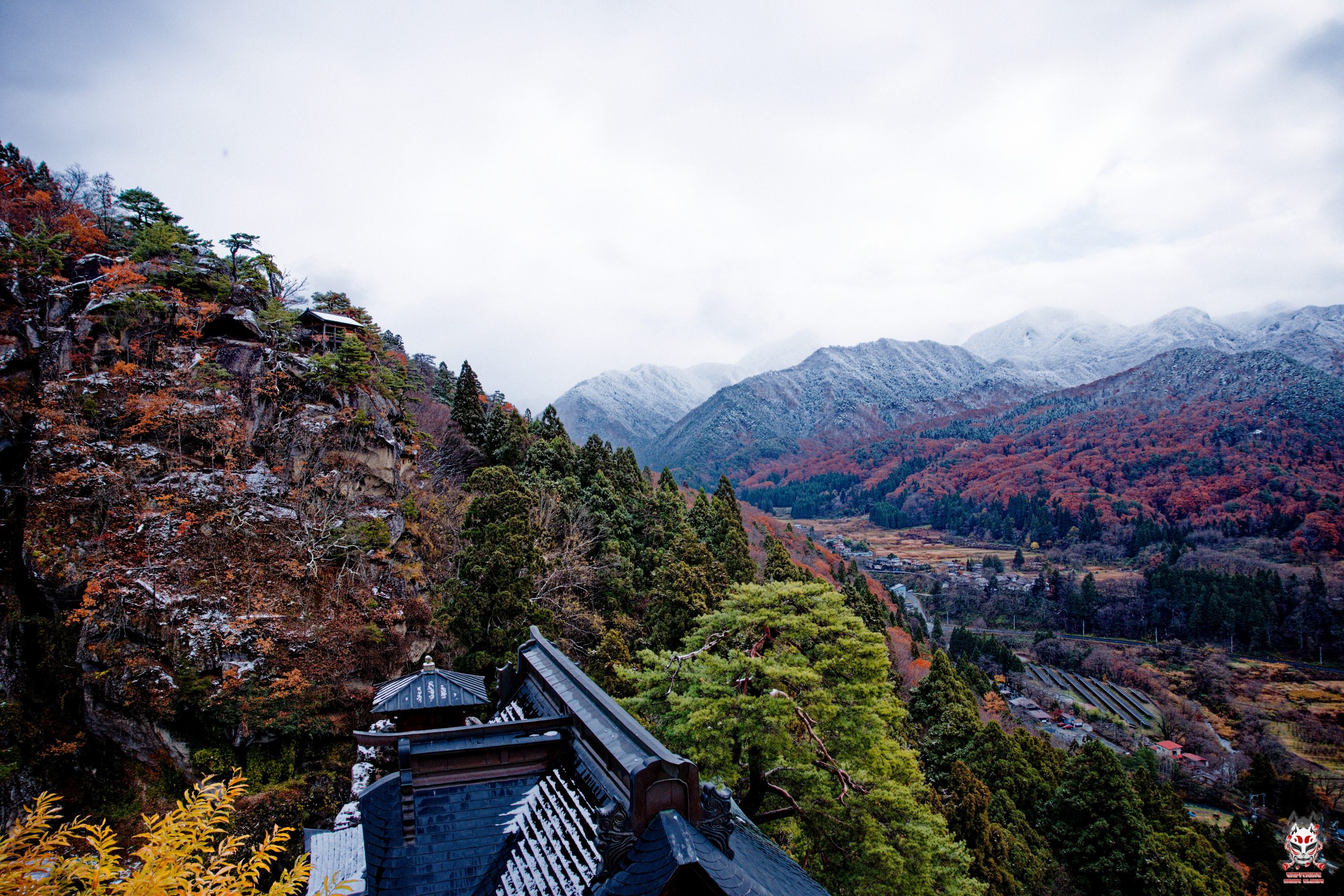 En ce début de l’hiver, nous avons pu profiter des premières chutes de neige dans la préfecture de Yamagata lors de notre visite du temple Rissyakuji (Yamadera).