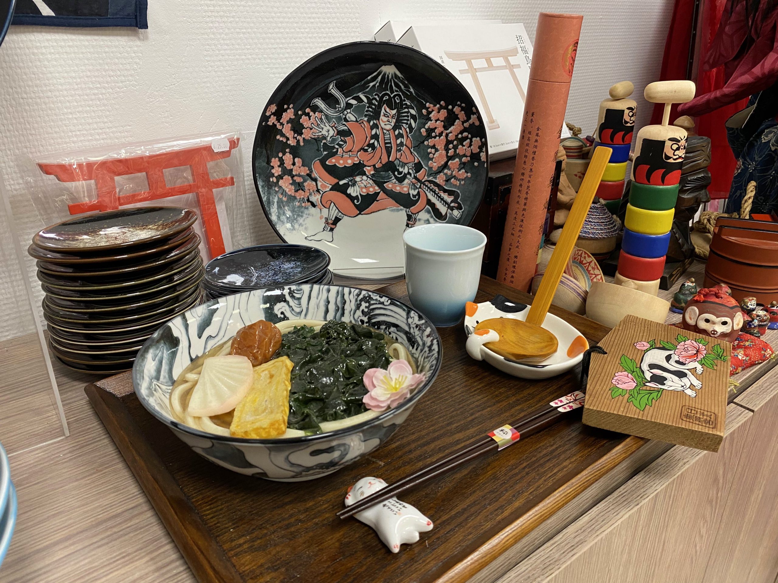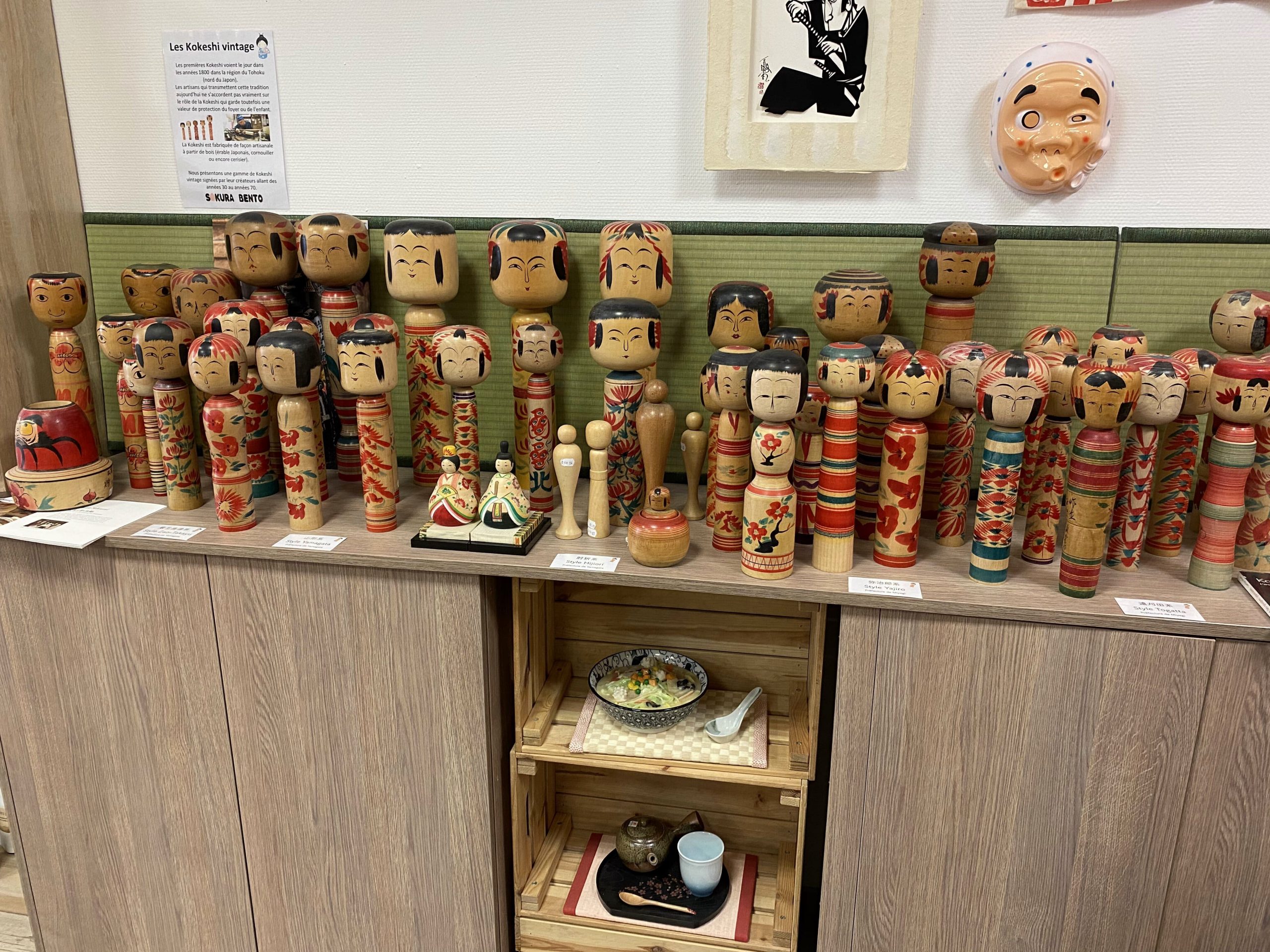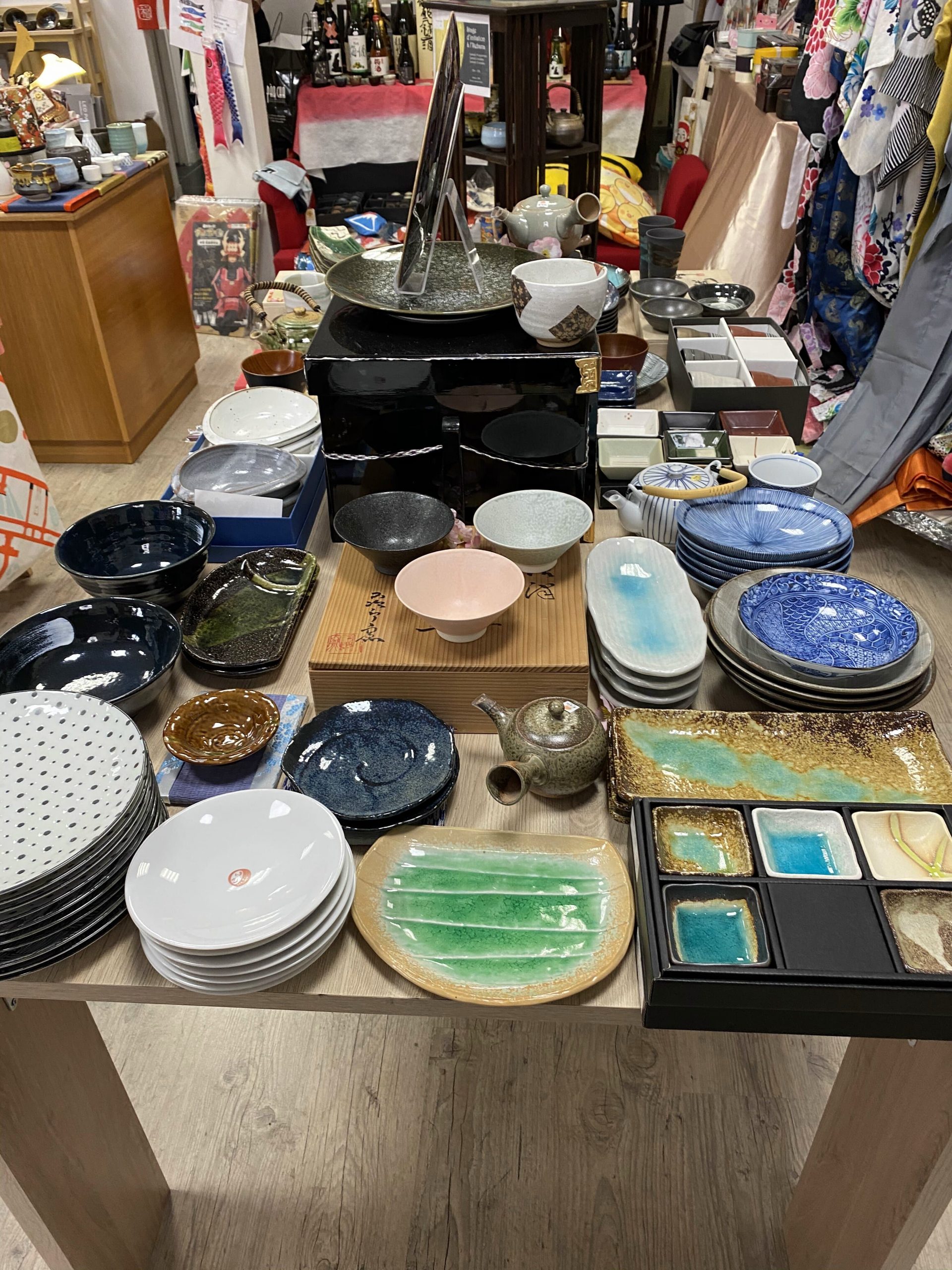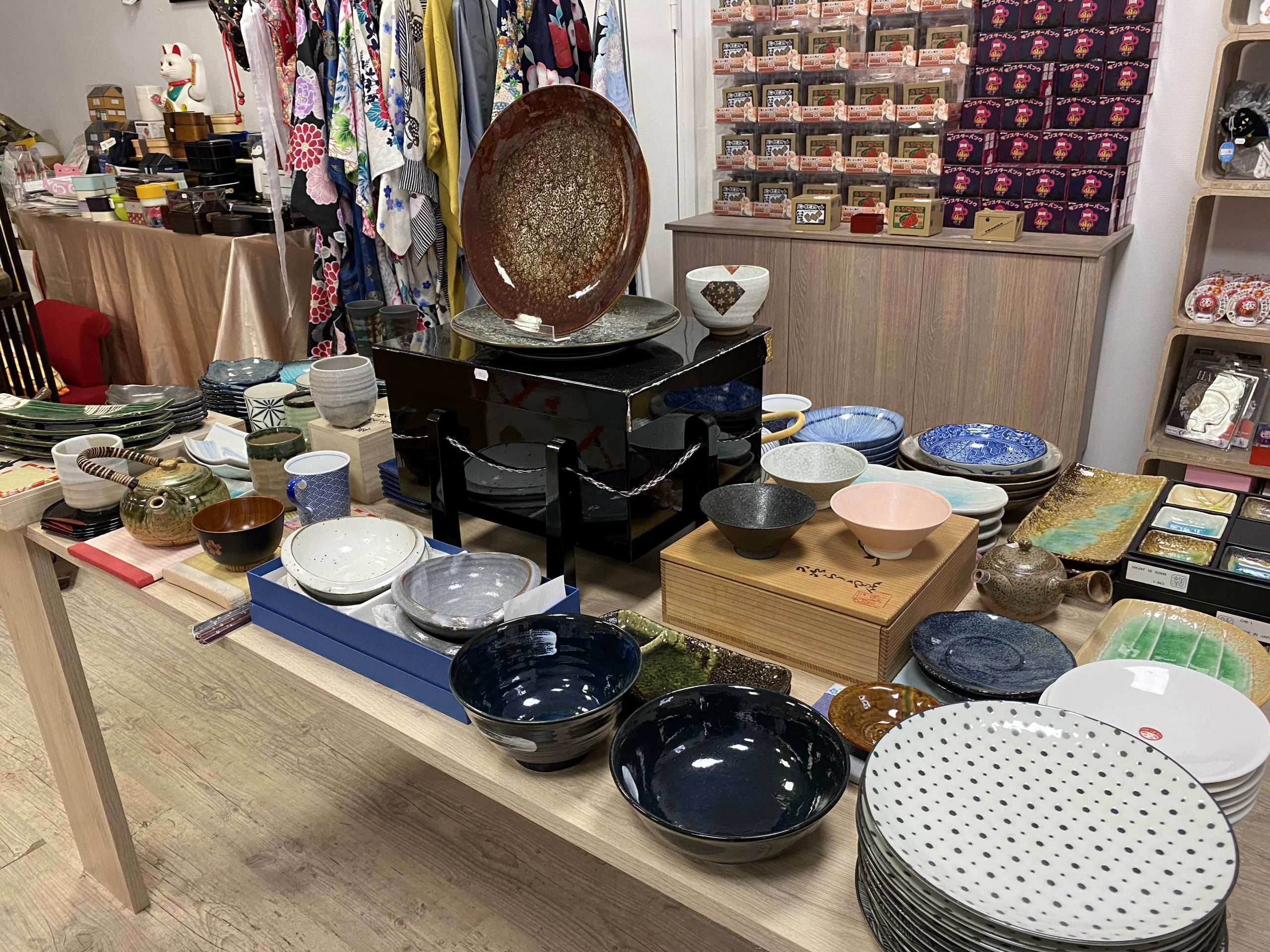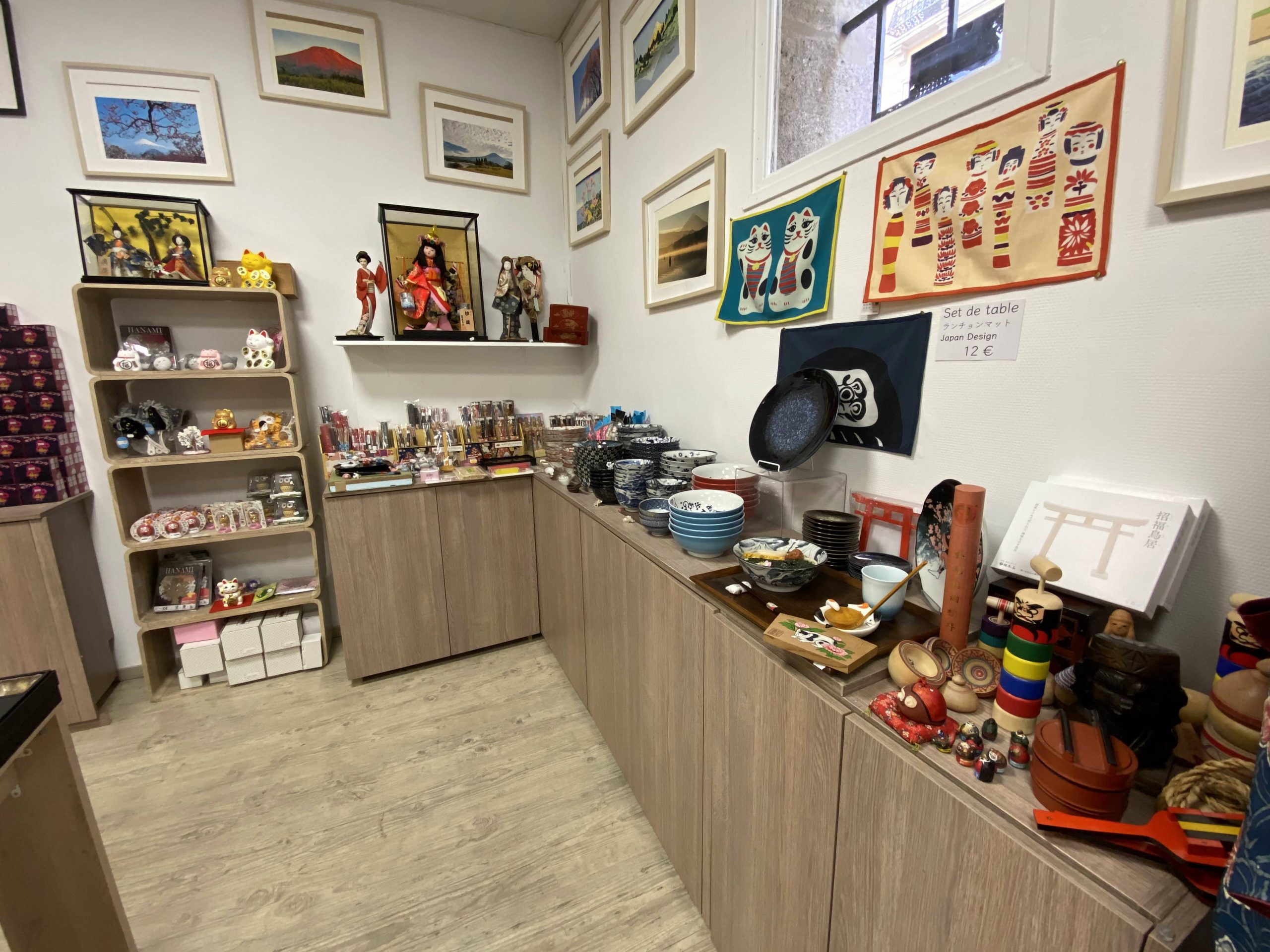 Quand vous rentrez dans la boutique vous découvrez une vrai caverne d’Ali baba en l’honneur du Japon. Des articles traditionnels tels que des éventails, de la vaisselle, des baguettes en passant par des articles de décorations comme des Maneki Neko, des Kokeshis, de la nourriture tels que des bonbons, biscuits, saké, des boites à bento, des limonades ramone et des textiles comme des kimonos, des chaussettes taxi, des tee-shirts et des Furoshiki.