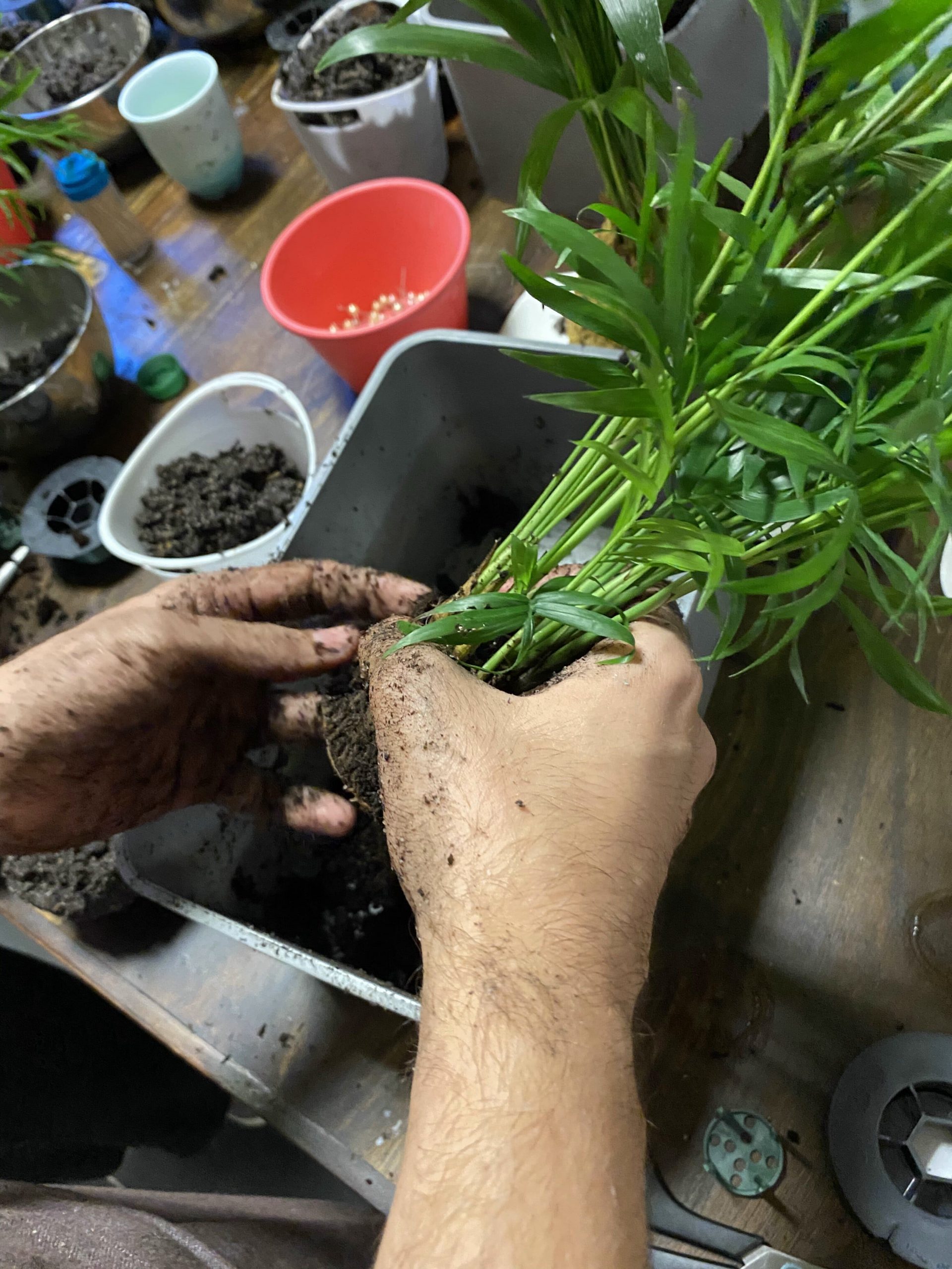 Lors de cet atelier, nous avions le choix entre deux plantes : le lierre ou le palmier nain. Nous avons choisi le palmier nain ou Chamaedorea elegans.