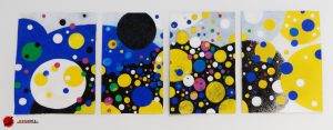Elle travaille actuellement sur la forme Wa (rond) et le Wa (paix) . D’où le Wa no Wa (ateliers de paix) destinés aux enfants qui découpent des cercles en carton recouverts de tissu et qui, reliés entre eux forment une longue chaîne multicolore de solidarité, de paix. Allusion aussi aux cercles des jeux olympiques qui auront lieu précisément au Japon prochainement.