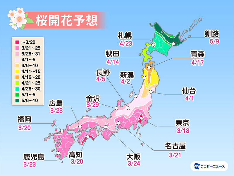 Tokyo: 18 Mars – Fukuoka: 20 Mars – Nagoya: 21 Mars – Kochi: 20 Mars – Kagoshima: 23 Mars – Hiroshima: 23 Mars – Osaka: 24 Mars – Kanazawa: 29 Mars – Sendai: 1er Avril – Niigata: 2 Avril – Nagano: 5 Avril – Akita: 14 Avril – Aomori: 17 Avril – Sapporo: 23 Avril – Kushiro: 9 Mai