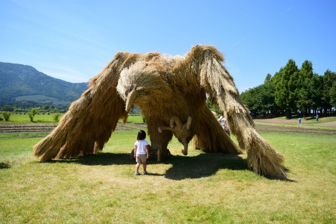 C’est donc depuis près de 10 ans que sont chaque année exposées dans les champs des alentours de Niigata de gigantesque reproduction d’animaux, d’insectes ou encore de personnages de la pop culture. L’une des figures les plus emblématiques de cet événement, très attendu des autochtone, est Amy Goda, un artiste local qui s’est particulièrement fait remarquer l’an passé avec ses sculptures quasi-taille réelle de dinosaures.